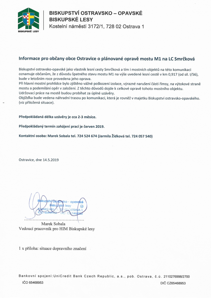 Informace pro občany obce Ostravice o plánované opravě mostu M1 na LC Smrčková.pdf