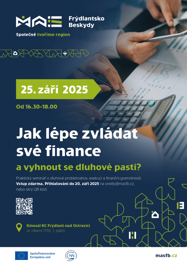 Zveme vás na praktický seminář zaměřený na správu osobních financí a prevenci dluhové pasti. Seminář proběhne zdarma 20. září 2025, registrace do 20. září.