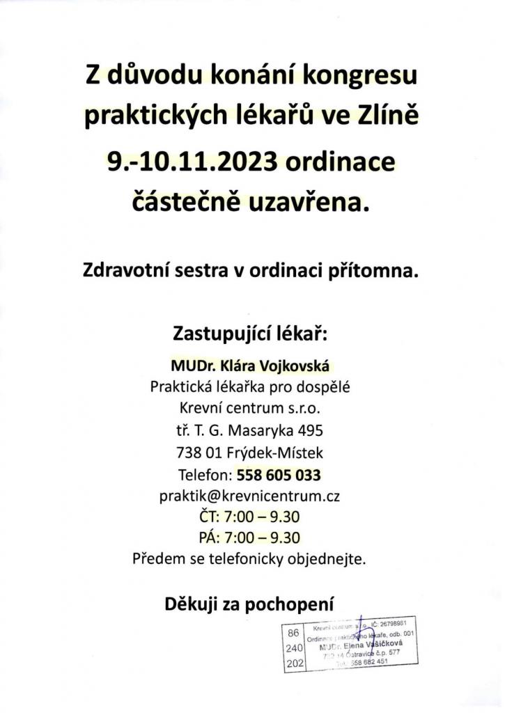 Ordinace částečně uzavřena ve dnech 9. –10. 11. 2023