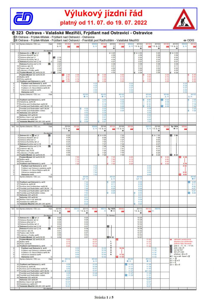 Náhradní doprava je organizována dle výlukového jízdního řádu. A v úseku Frýdlant n. O.  - Valašské Meziříčí a Frýdlant n. O. - Ostravice a zpět jedou vlaky v odlišných časech!!!