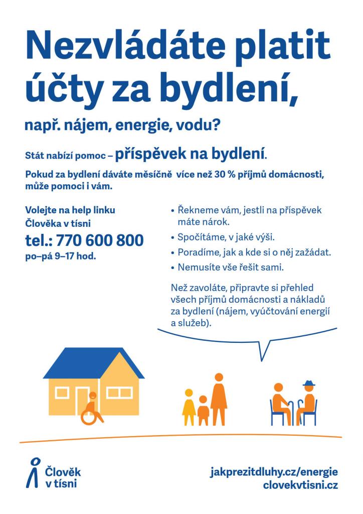 Nezvládáte platit účty za bydlení, například nájem, energie, vodu?
