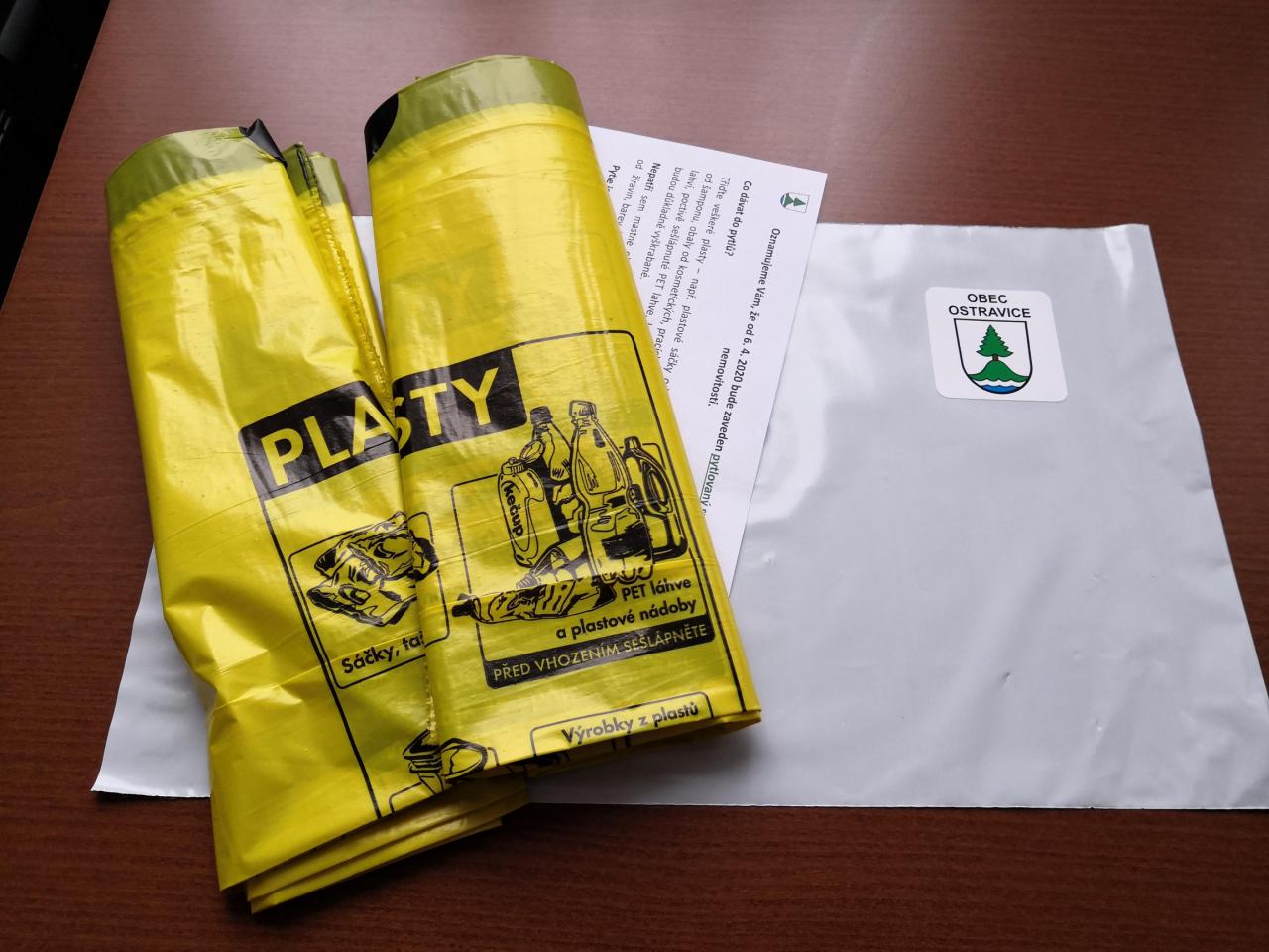 ZAVÁDÍME NOVOU SLUŽBU: Obyvatelům Kamence, ulice kolem restaurace U Řeky a ulice kolem ZŠ je v těchto dnech rozvážena tato obálka. V obálce najdete informace k pytlovanému svozu plastů tzv. “od prahu domu“ a dva pytle na plast. Svoz plastů bude probíhat vždy v první středu v měsíci. Prosíme, vhazujte do pytlů pouze plast, v případě vložení jiného odpadu může být odvoz pytlů odmítnut.