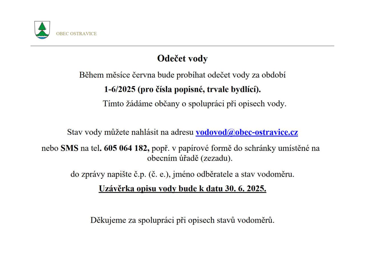 Uzávěrka opisu vody bude k datu 30. 6. 2025.
