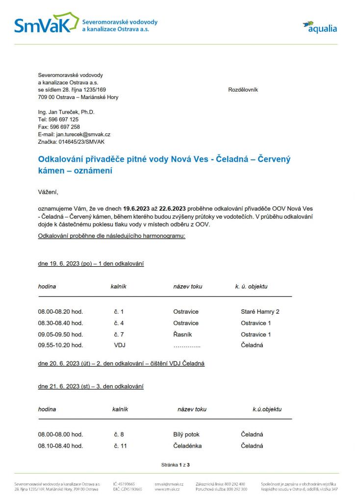 Odkalování přivaděče pitné vody Nová Ves - Čeladná – Červený kámen – oznámení