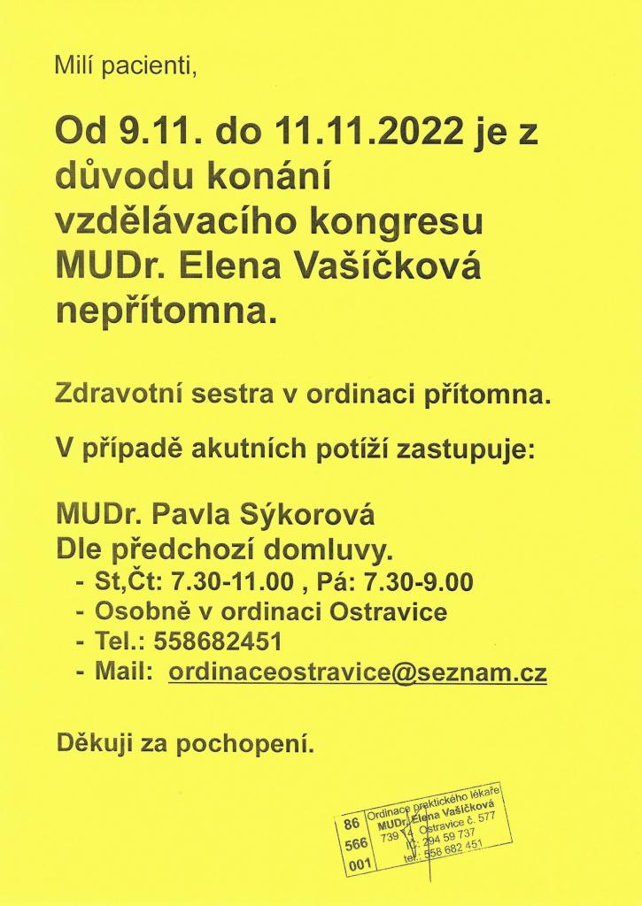 Omezení provozu ordinace 9. 11. – 11. 11. 2022