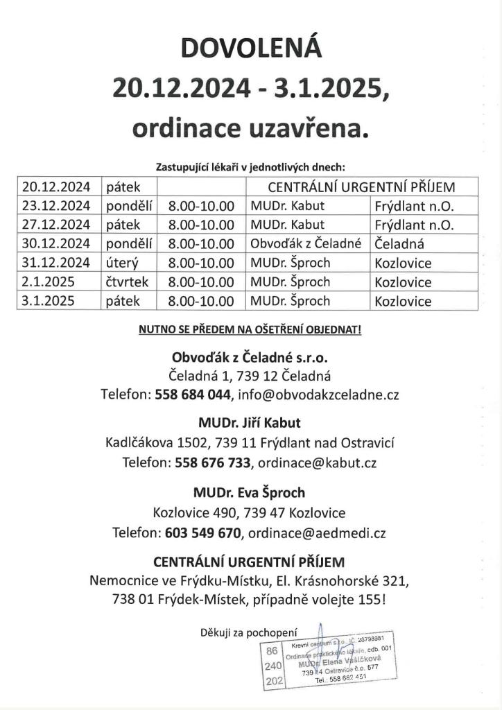 DOVOLENÁ 20. 12. 2024 – 3. 1. 2025