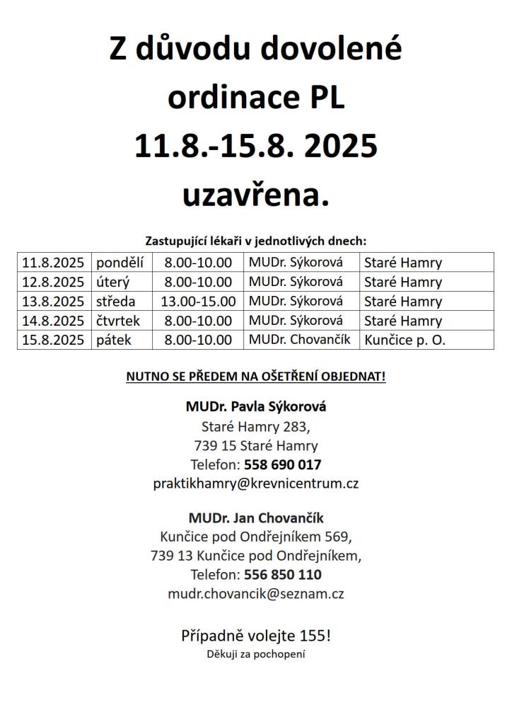 NUTNO SE PŘEDEM NA OŠETŘENÍ OBJEDNAT!