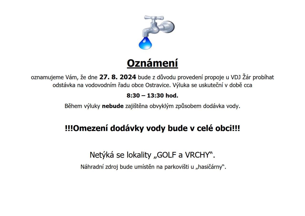 !!!Omezení dodávky vody bude v celé obci!!!