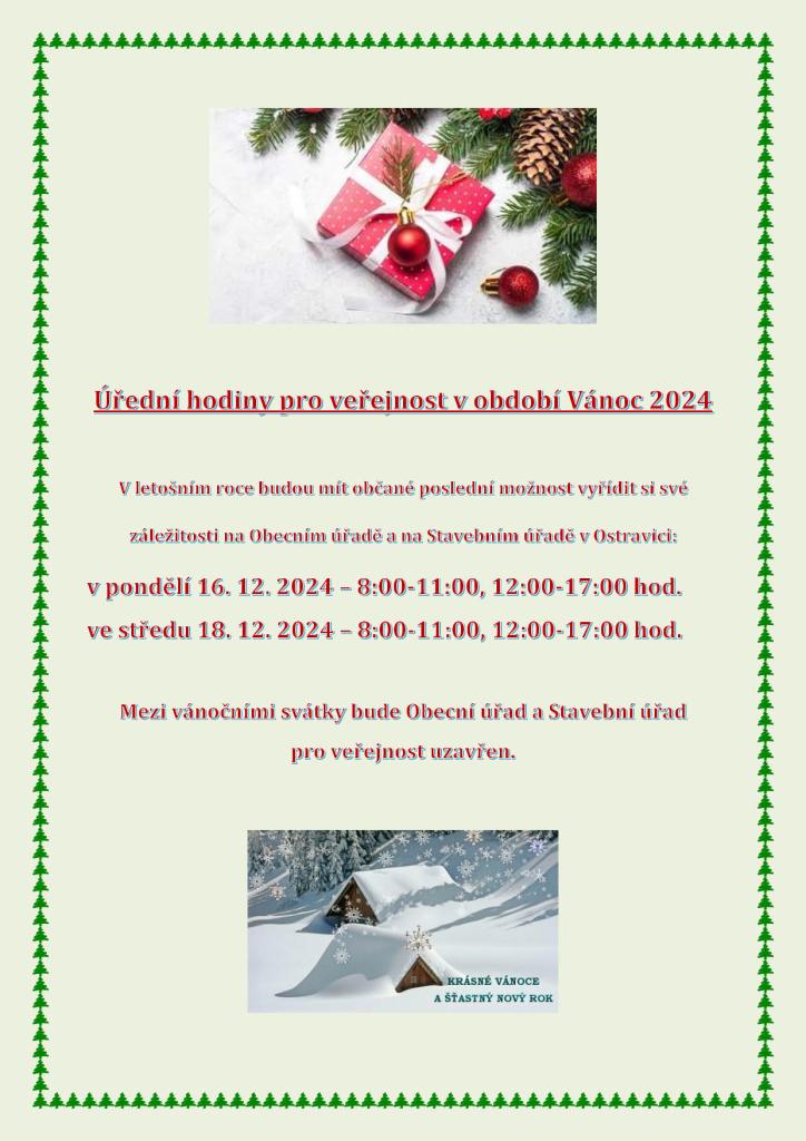 Provozní doba o Vánocích 2