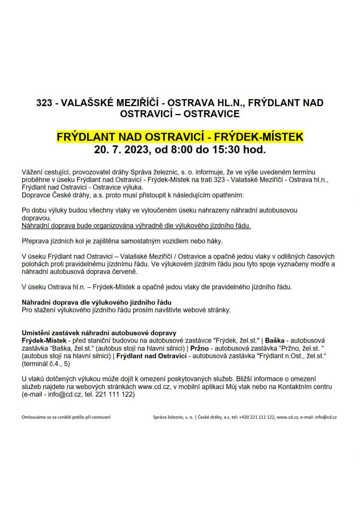 Výluka v úseku Frýdek-Místek - Frýdlant nad Ostravicí