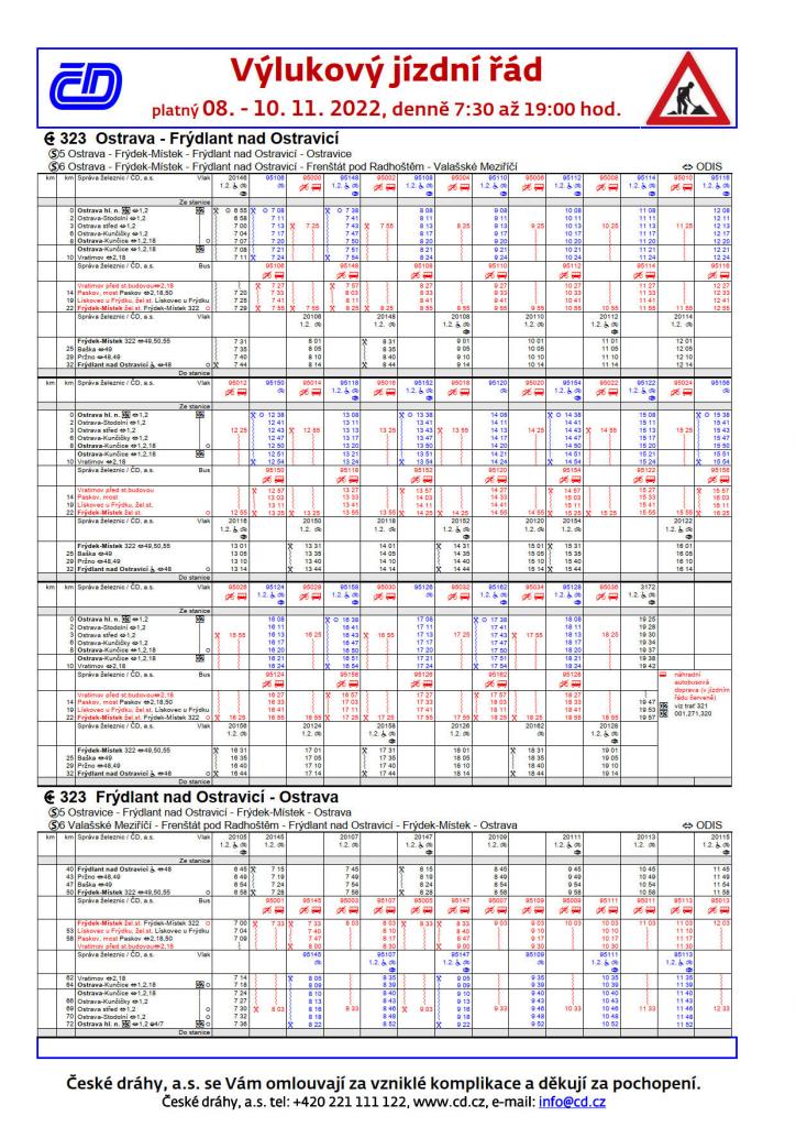 Výluka v úseku Frýdek-Místek – Vratimov – Ostrava hl.n. na trati 323 - Valašské Meziříčí - Ostrava hl.n., Frýdlant nad Ostravicí - Ostravice