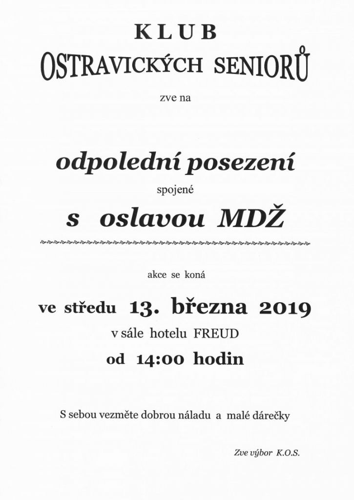 Spojené s oslavou MDŽ, ve středu 13. března 2019, v sále hotelu Freud, od 14:00 hodin.