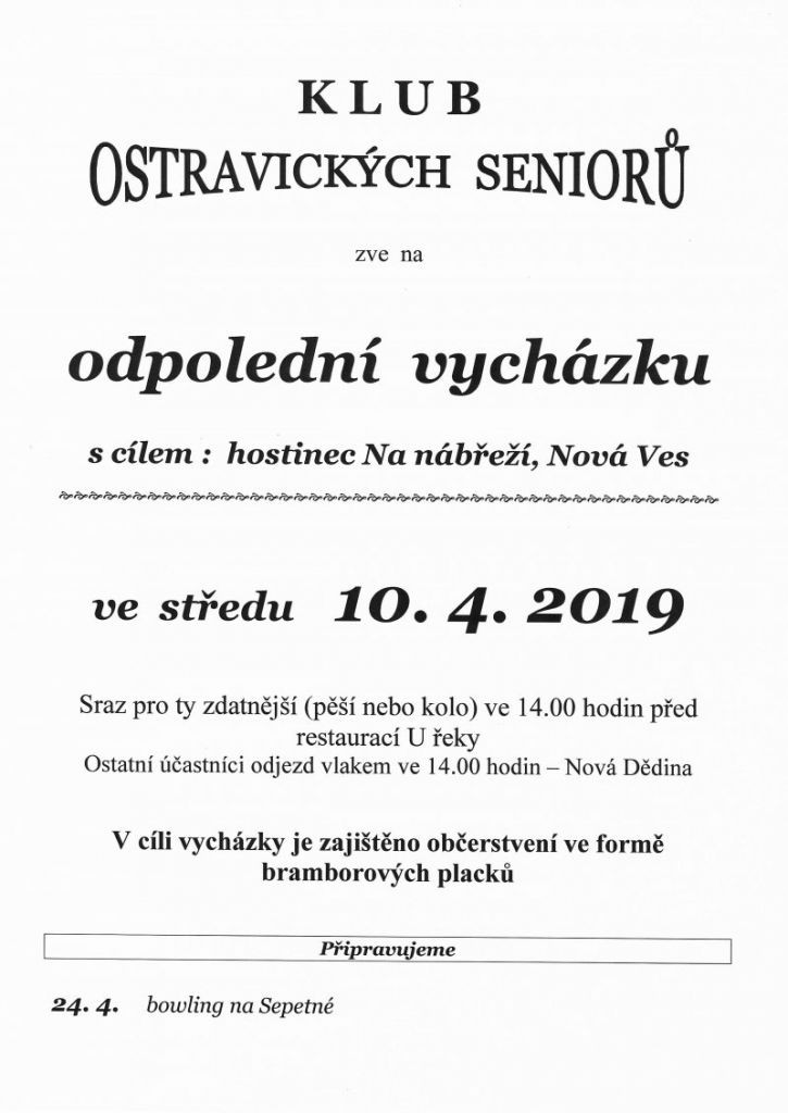 Ve středu 10. 4. 2019 s cílem: hostinec Na nábřeží, Nová Ves